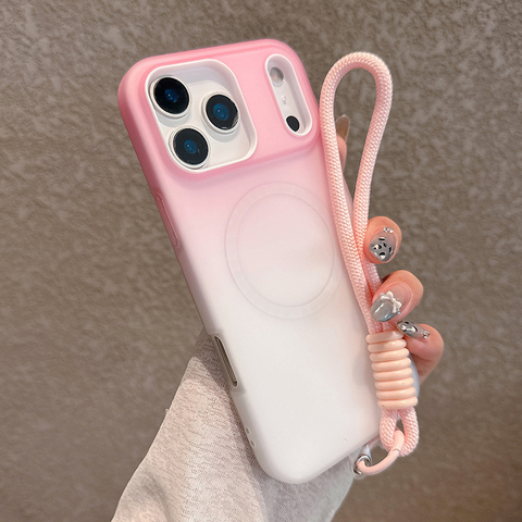 Thạch Từ Trường Hợp Điện Thoại Cho Iphone 17 Pro Max 16 15 Với Dây Đeo Cổ Tay Gradient Da Cảm Thấy Điện Thoại Di Động Trở Lại Trường Hợp Bìa Cho Tôi Điện Thoại Không Khí