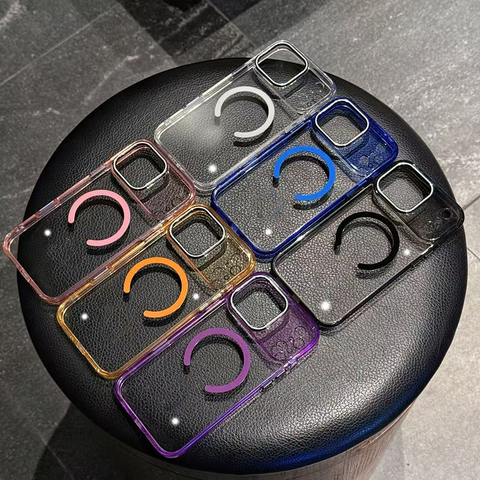 Đầy Màu Sắc Trong Suốt Rõ Ràng Magnetic Trường Hợp Điện Thoại Đối Với iPhone Không Khí 17 16 Pro Max 15 Cộng Với 14 Mềm TPU Acrylic Cứng Bìa